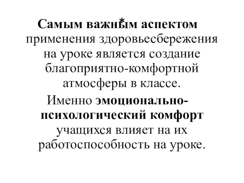 Самым важным аспектом применения здоровьесбережения на уроке является создание благоприятно-комфортной атмосферы