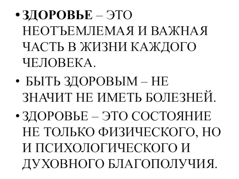 Слайд 2ЗДОРОВЬЕ – ЭТО НЕОТЪЕМЛЕМАЯ И ВАЖНАЯ ЧАСТЬ В ЖИЗНИ КАЖДОГО ЧЕЛОВЕКА.