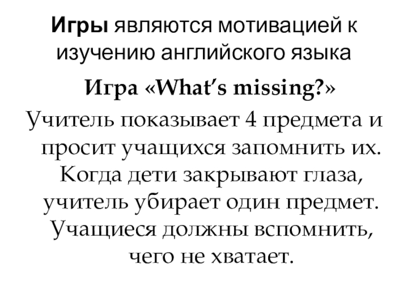 Слайд 10Игры являются мотивацией к изучению английского языка