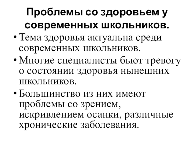 Слайд 3Проблемы со здоровьем у современных школьников.