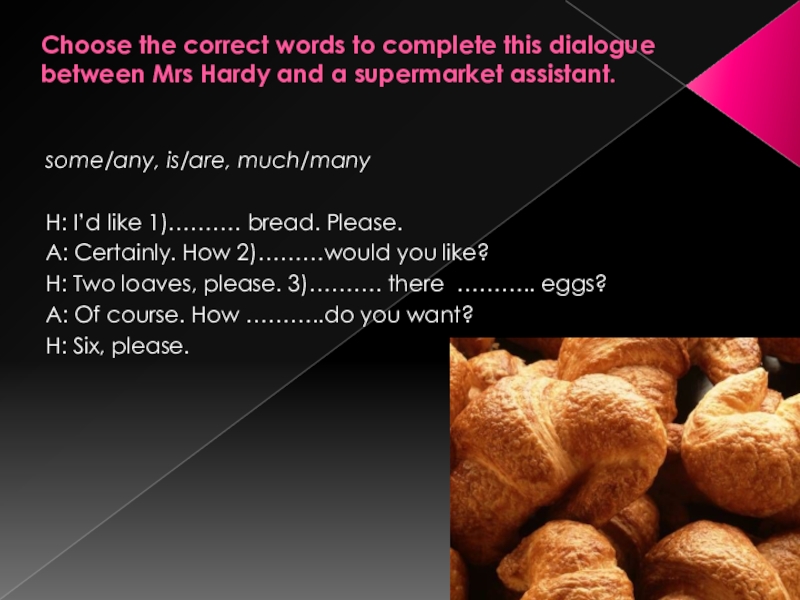 Слайд 7Choose the correct words to complete this dialogue between Mrs Hardy