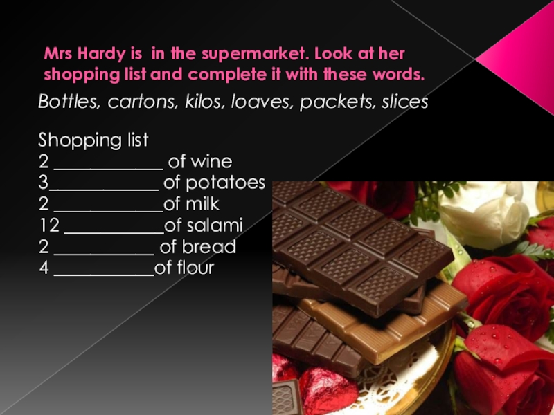 Слайд 6Mrs Hardy is in the supermarket. Look at her shopping list
