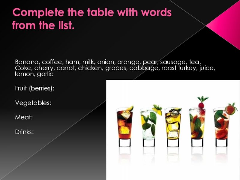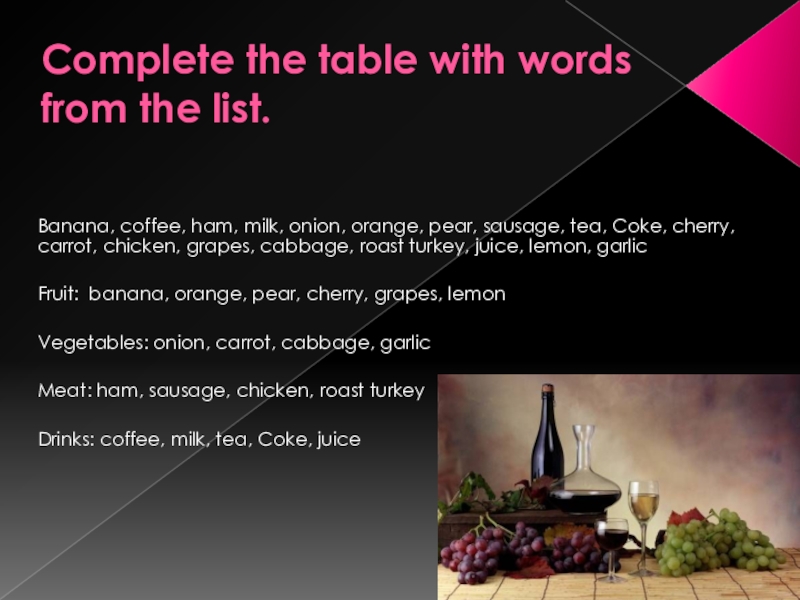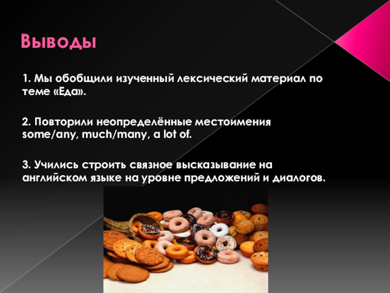 1. Мы обобщили изученный лексический материал по теме «Еда».