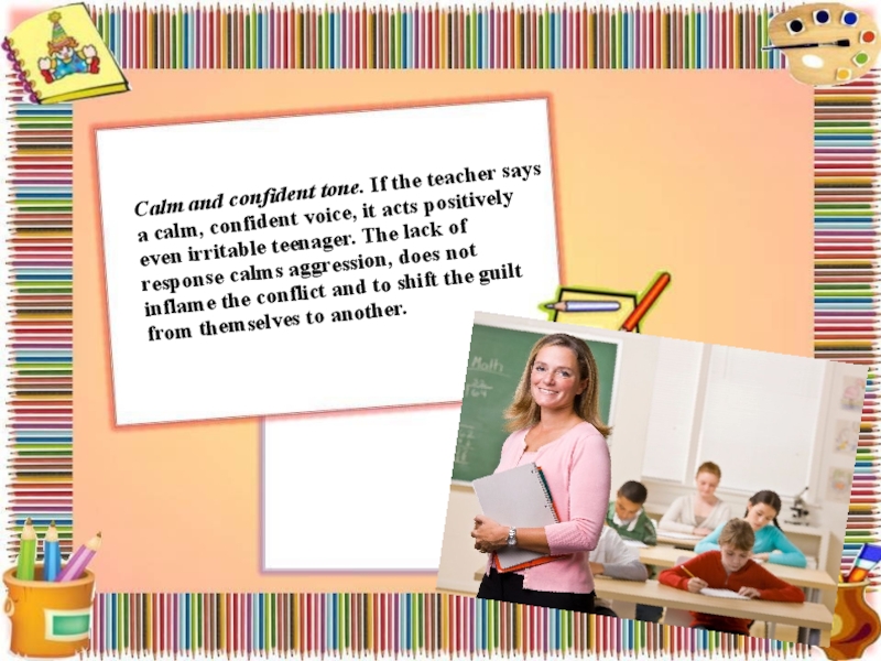 Слайд 3Calm and confident tone. If the teacher says a calm, confident