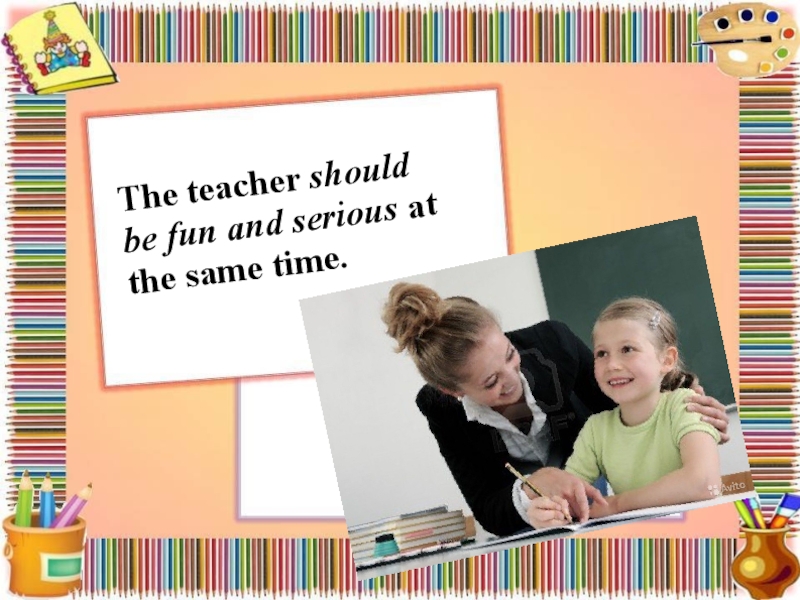 Слайд 5The teacher should be fun and serious at the same time.