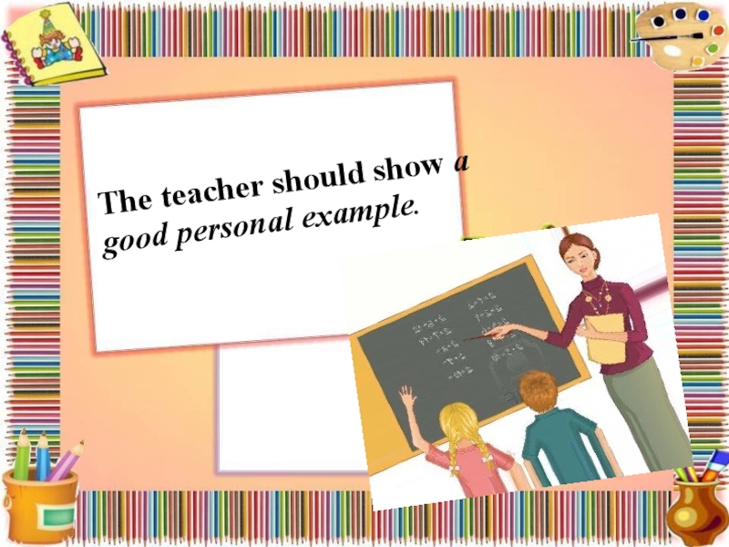 Слайд 6The teacher should show a good personal example.