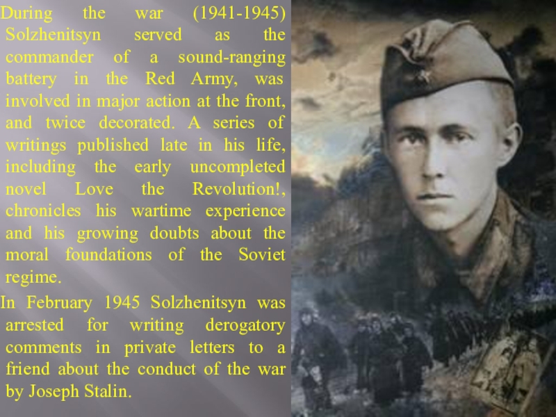 In 1950, he was sent to a "Special Camp" for political prisoners in the town of Ekibastuz in Kazakhstan. His experiences at Ekibastuz formed the basis for the book One Day in the Life of Ivan Denisovich.