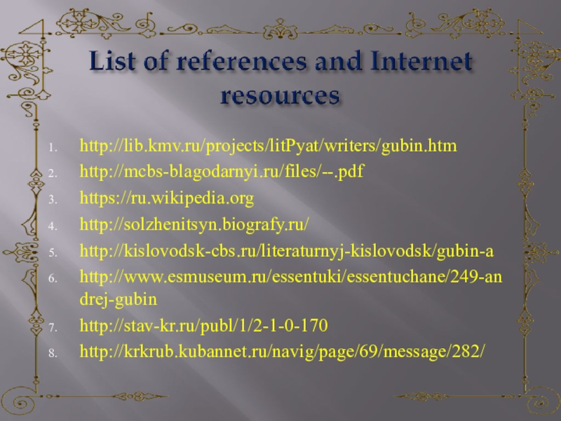 Это сайт презентаций, где можно хранить и обмениваться своими презентациями, докладами, проектами, шаблонами в формате PowerPoint с другими пользователями. Мы помогаем школьникам, студентам, учителям, преподавателям хранить и обмениваться учебными материалами.