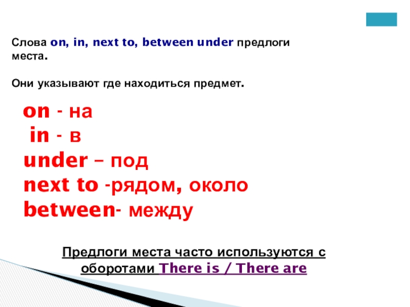 Предлоги места часто используются с оборотами There is / There are