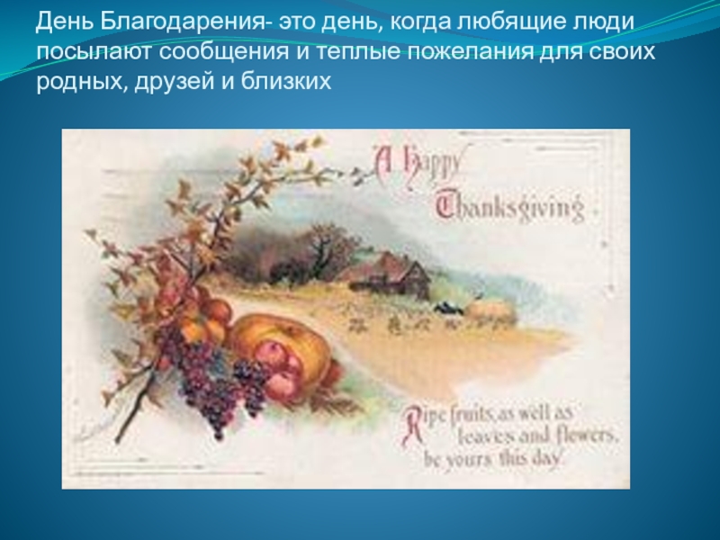 Слайд 7День Благодарения- это день, когда любящие люди посылают сообщения и теплые