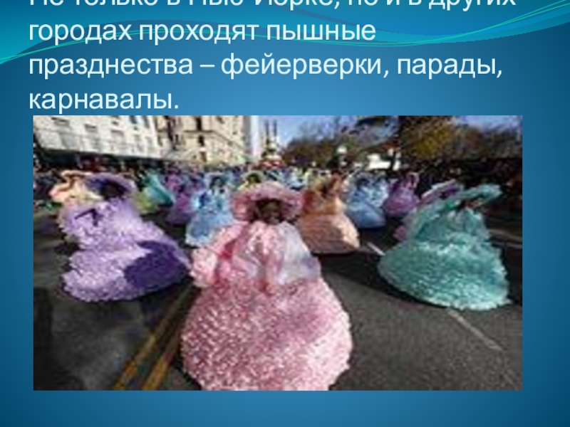 Слайд 10Не только в Нью-Йорке, но и в других городах проходят пышные