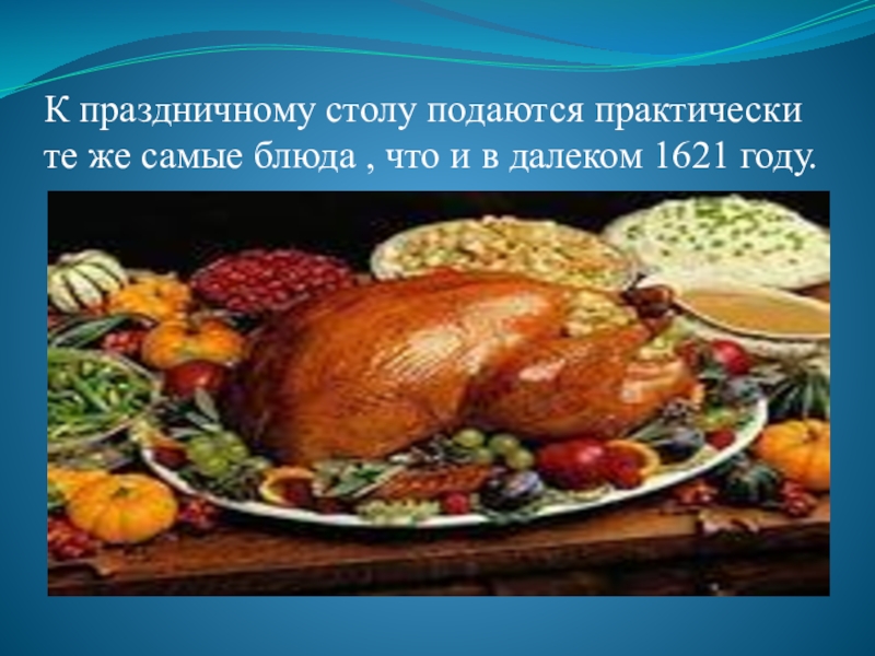 К праздничному столу подаются практически те же самые блюда , что и в далеком 1621 году.