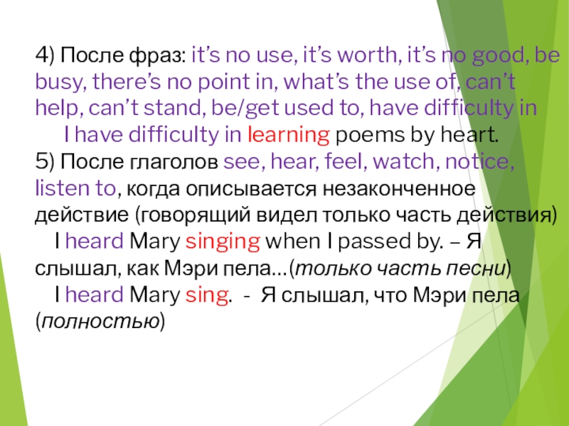 Слайд 64) После фраз: it’s no use, it’s worth, it’s no good,