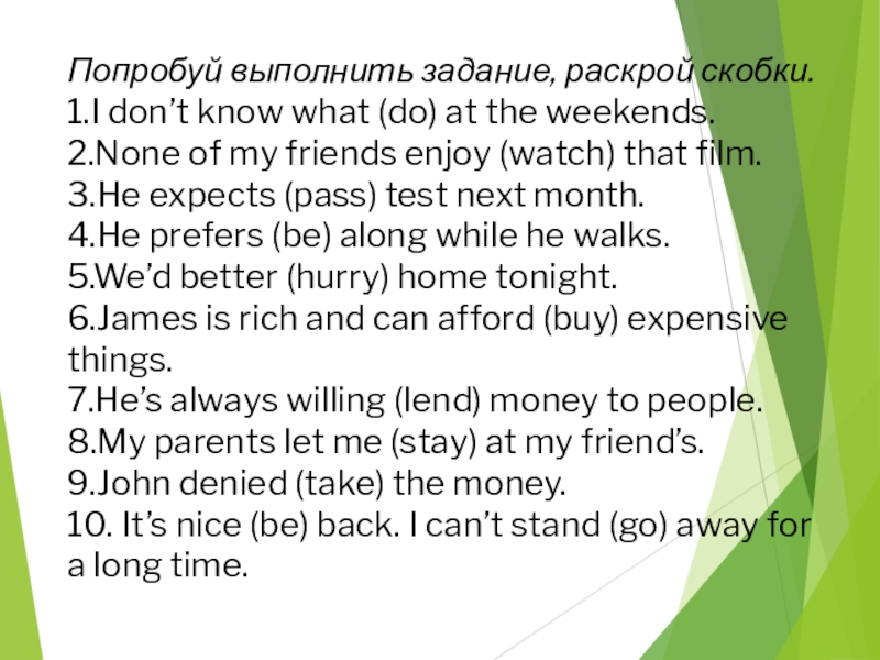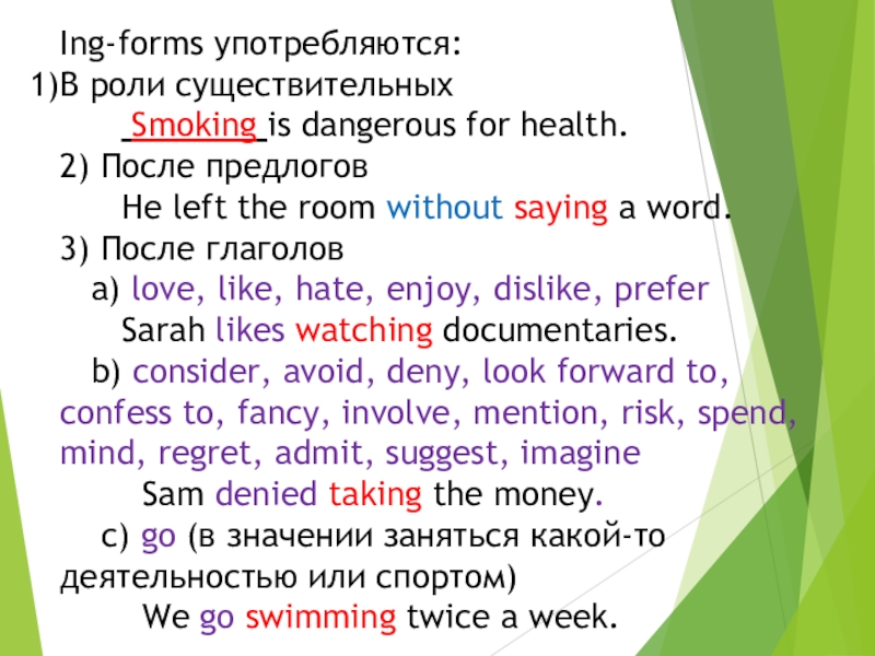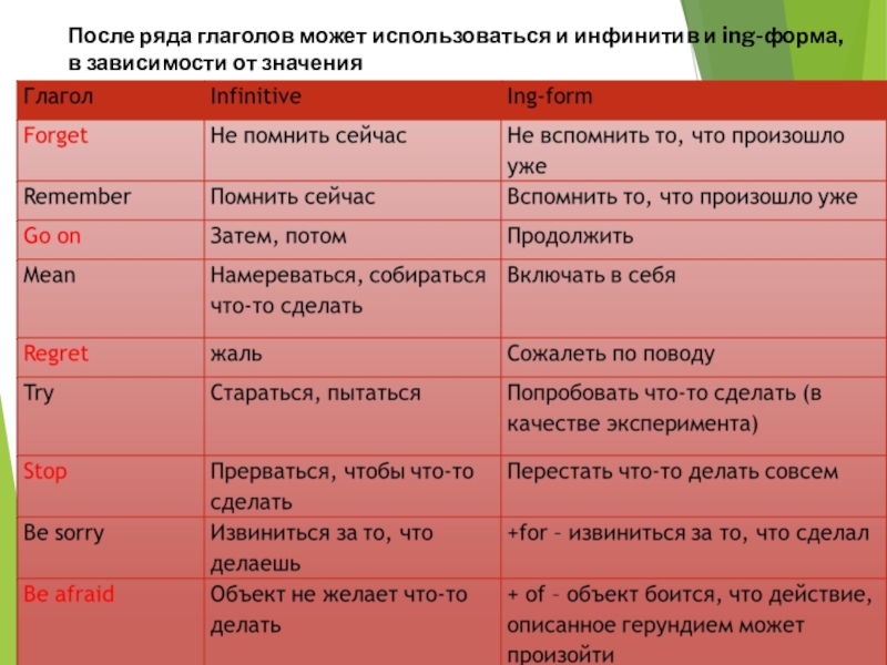 Слайд 8После ряда глаголов может использоваться и инфинитив и ing-форма, в зависимости