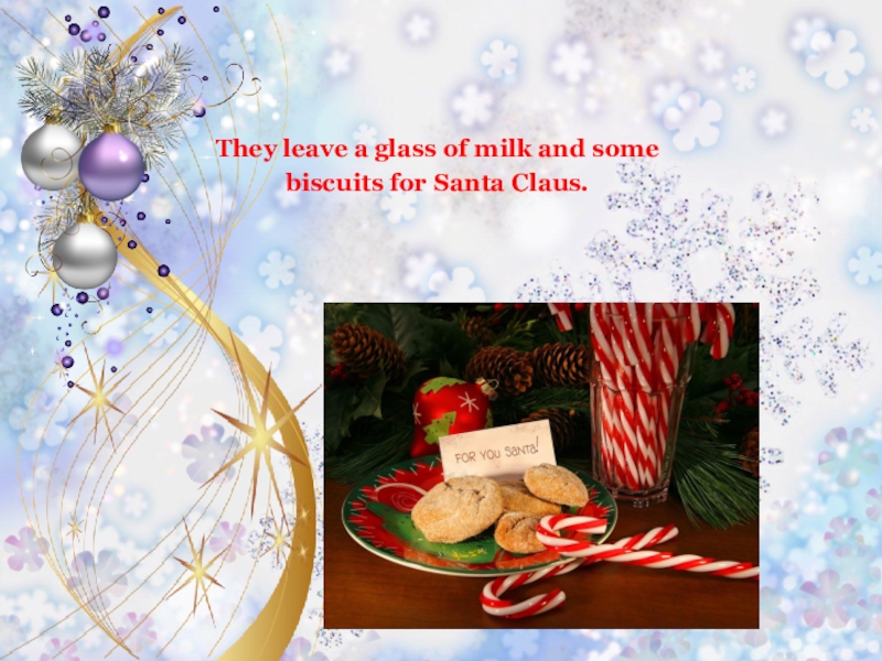 They leave a glass of milk and somebiscuits for Santa Claus.