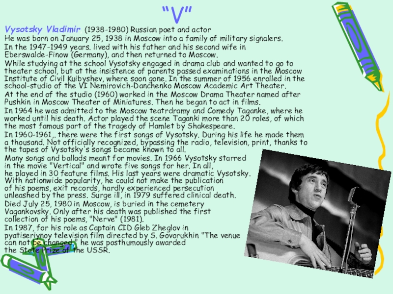 Vysotsky Vladimir, (1938-1980) Russian poet and actor