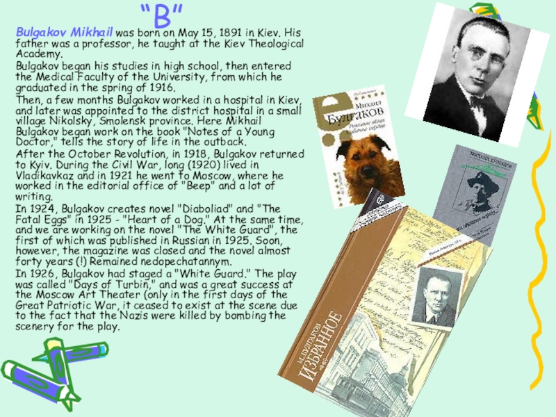 Bulgakov Mikhail was born on May 15, 1891 in Kiev. His
