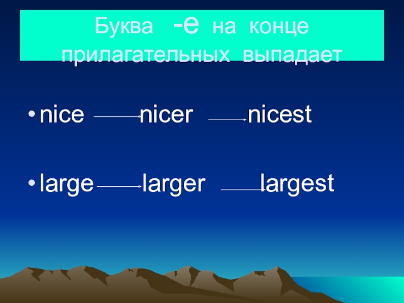 Буква  -e на конце прилагательных выпадаетnice    nicer    nicestlarge