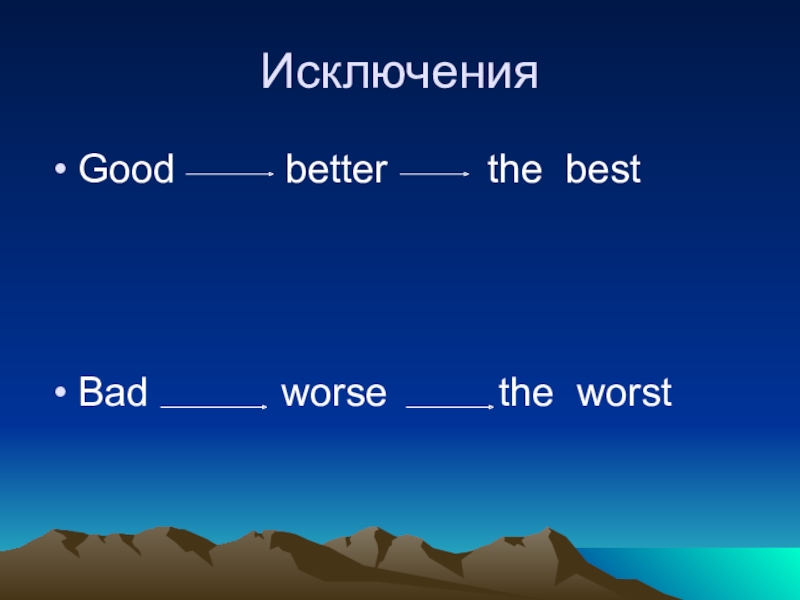 ИсключенияGood     better     the bestBad