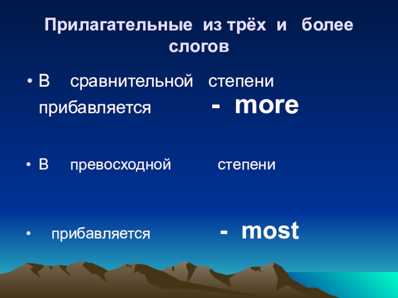 Прилагательные из трёх и  более  слоговВ  сравнительной  степени прибавляется