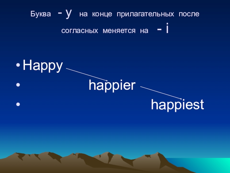 Буква - y на конце прилагательных после согласных меняется на  - iHappy
