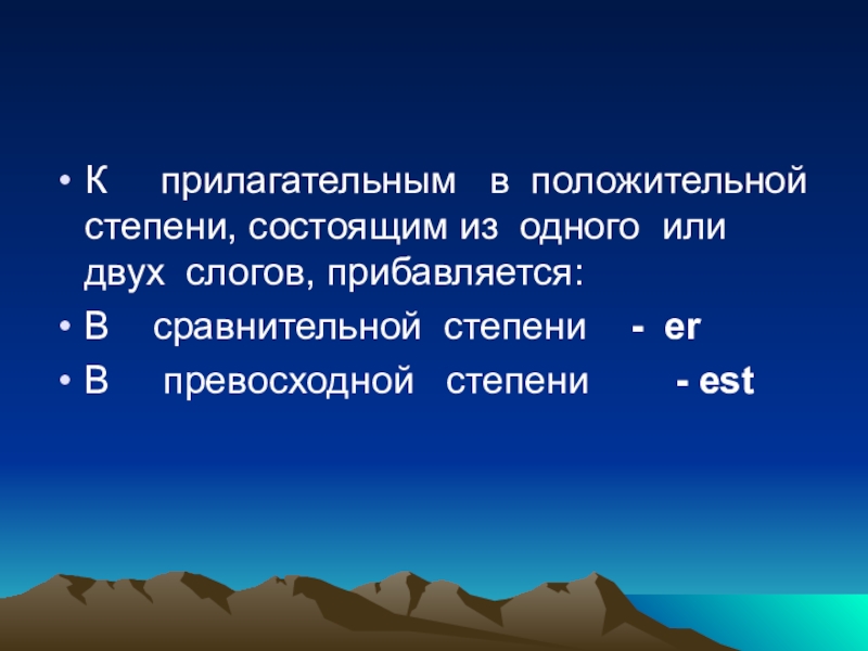 К   прилагательным  в положительной степени, состоящим из одного или двух слогов, прибавляется:В  сравнительной