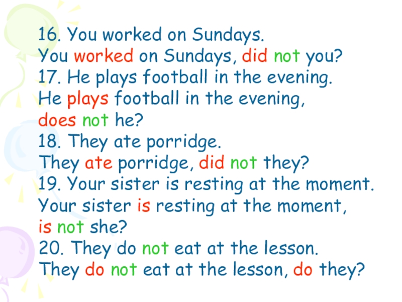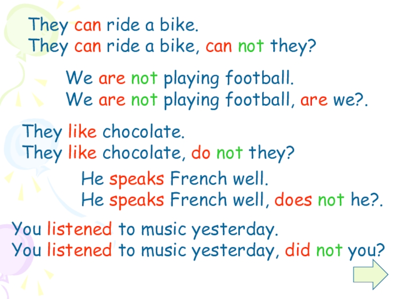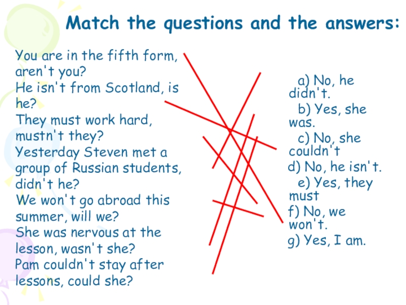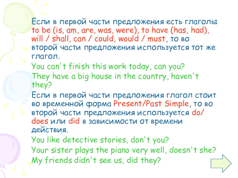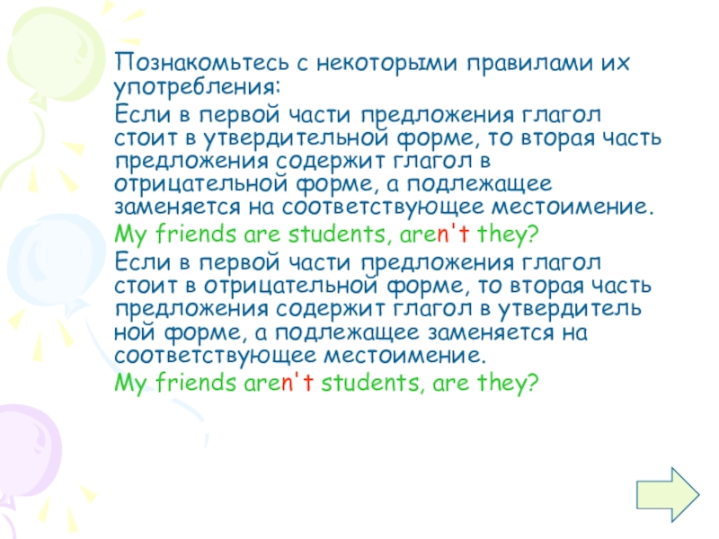 Данная презентация разработана для УМК М.З.Биболетовой «Enjoy English» для 5 класса. Представляет грамматический материал по теме «Tag questions ». Также может использоваться как дидактический материал при работе с другими УМК.