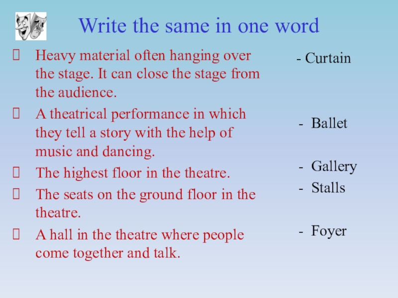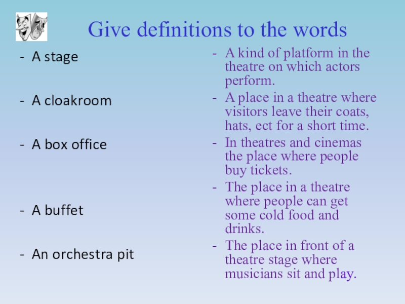 A place in a theatre where visitors leave their coats, hats, ect for a short time.