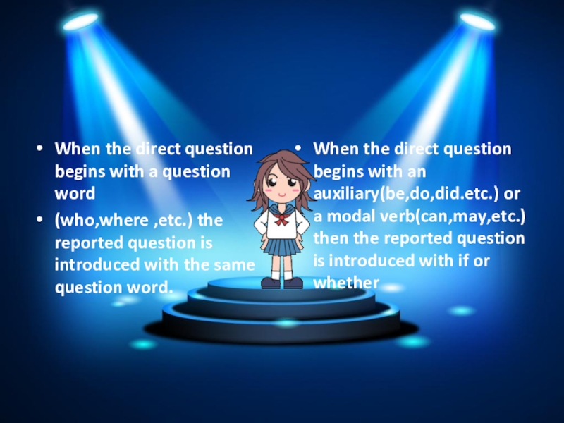 When the direct question begins with an auxiliary(be,do,did.etc.) or a modal verb(can,may,etc.) then the reported question is introduced with if or whether