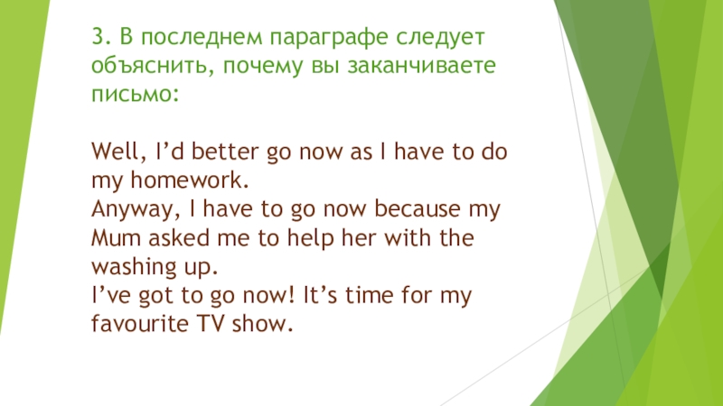 Слайд 93. В последнем параграфе следует объяснить, почему вы заканчиваете письмо: