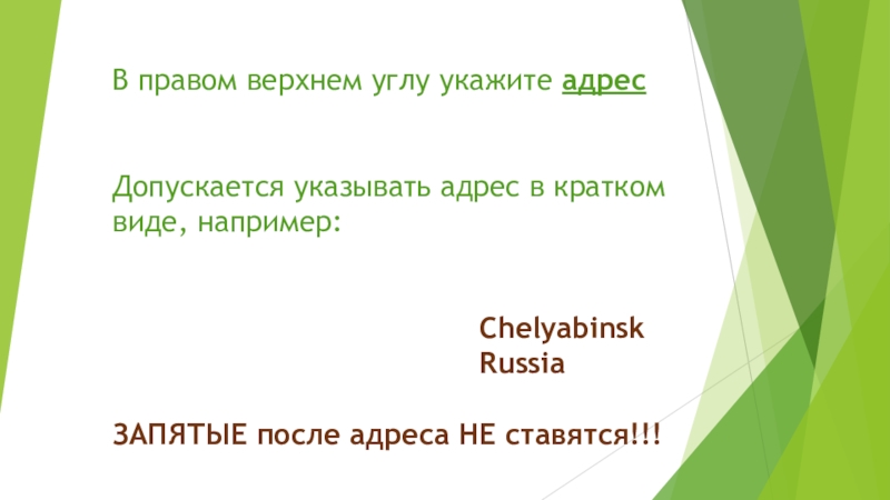 Слайд 2В правом верхнем углу укажите адрес