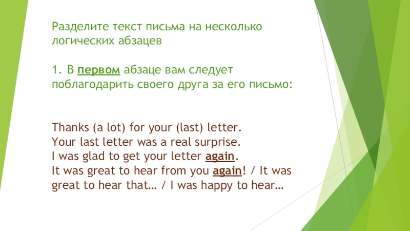 Слайд 5Разделите текст письма на несколько логических абзацев