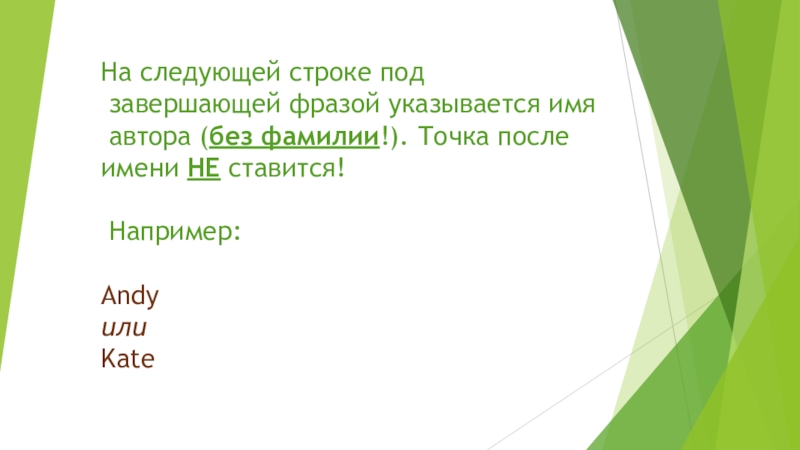 завершающей фразой указывается имя