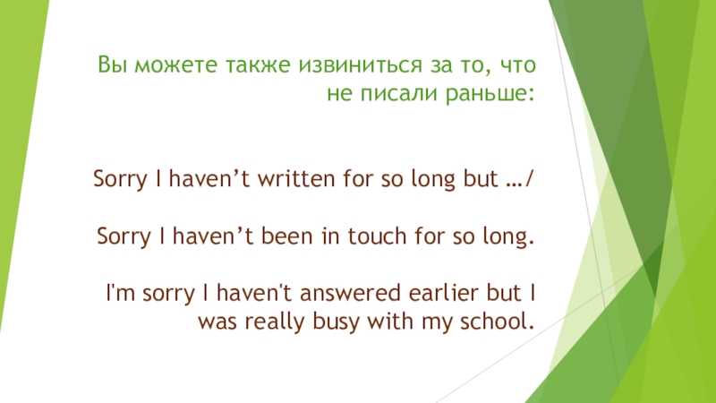 Слайд 6Вы можете также извиниться за то, что не писали раньше: