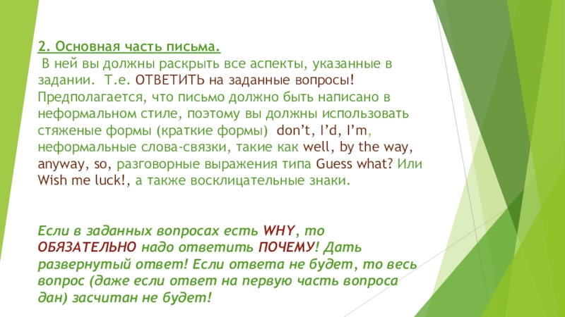 Слайд 82. Основная часть письма.