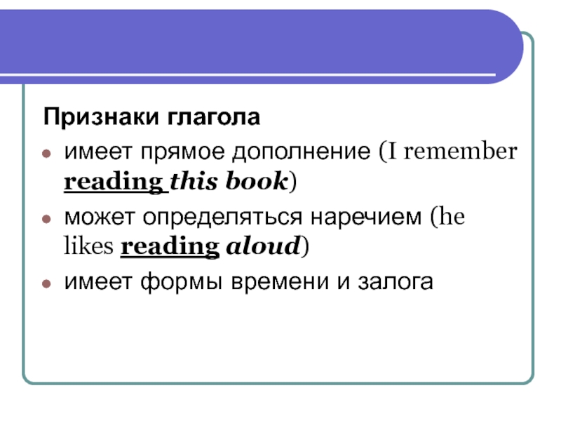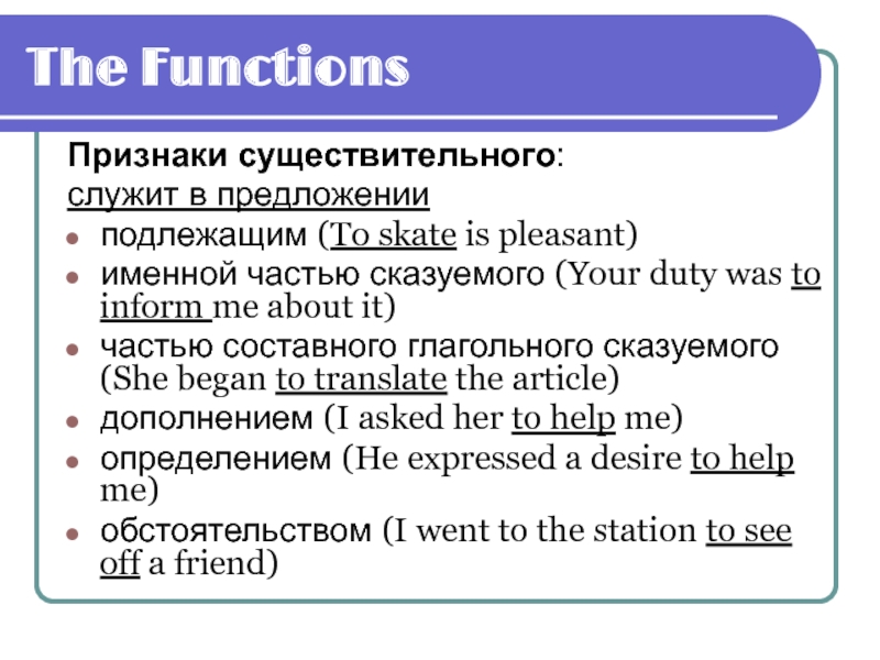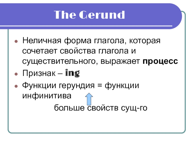 Неличные формы глагола отличаются двойственностью характера, совмещая в себе именные и глагольные черты, причем, имея общие глагольные свойства, с одной стороны, с другой они обладают различными чертами, свойственными именными частями речи, что и определяет их различные синтаксические функции.