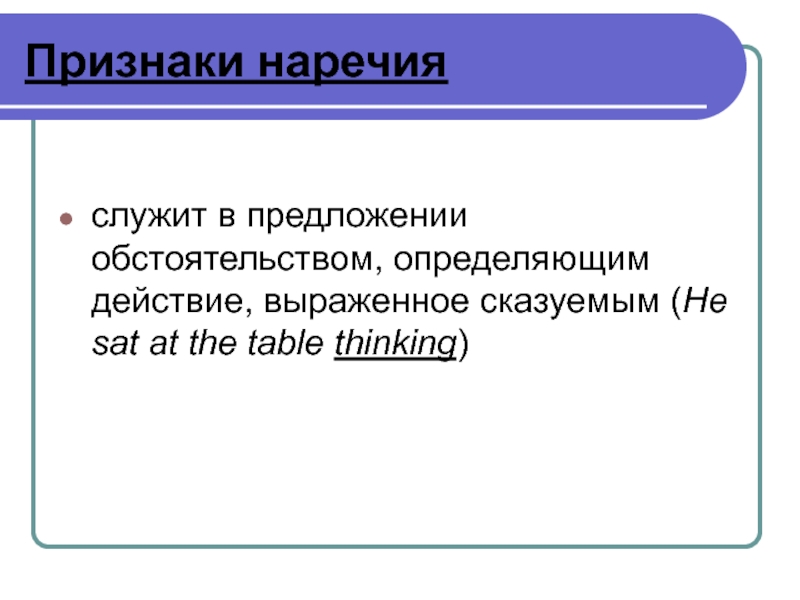 служит в предложении обстоятельством, определяющим действие, выраженное сказуемым (He sat