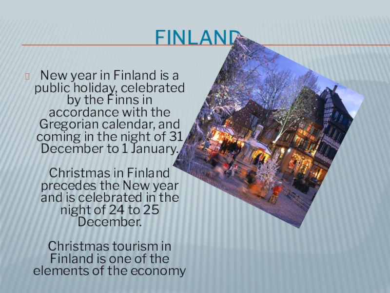 finlandNew year in Finland is a public holiday, celebrated by the Finns in accordance with the Gregorian