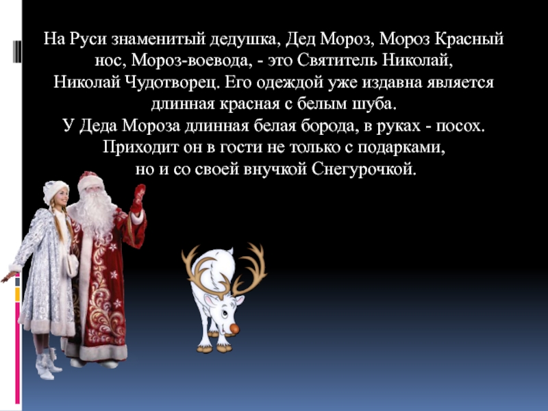 Слайд 3На Руси знаменитый дедушка, Дед Мороз, Мороз Красный