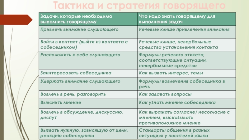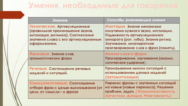 Параметры говорения