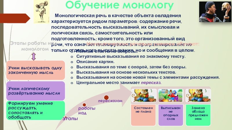 Монологическим речевым умениям обучают: