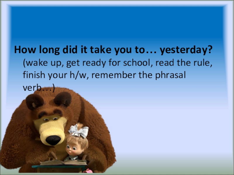 How long did it take you to… yesterday? (wake up, get ready for school, read the rule,