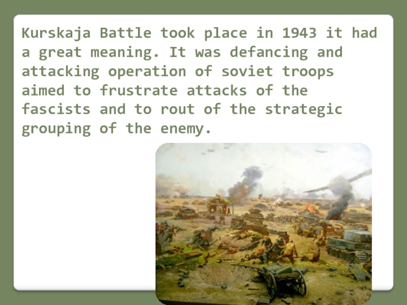 Слайд 5Kurskaja Battle took place in 1943 it had a great meaning.