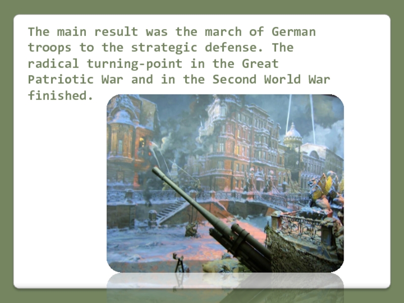strategic defense. The radical turning-point in the Great Patriotic War and in the Second World War finished.