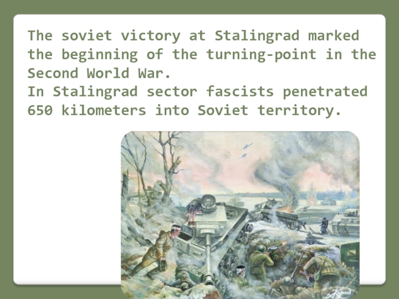 Слайд 3The soviet victory at Stalingrad marked the beginning of the turning-point