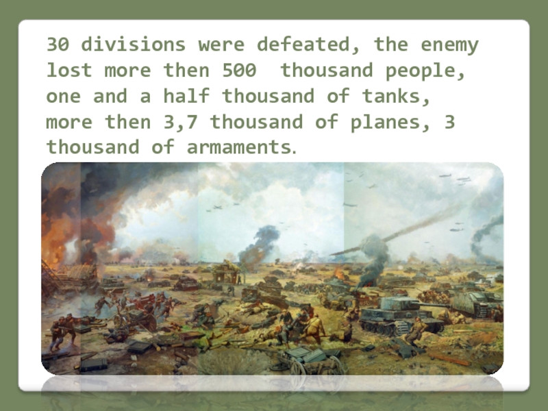 Слайд 630 divisions were defeated, the enemy lost more then 500 thousand