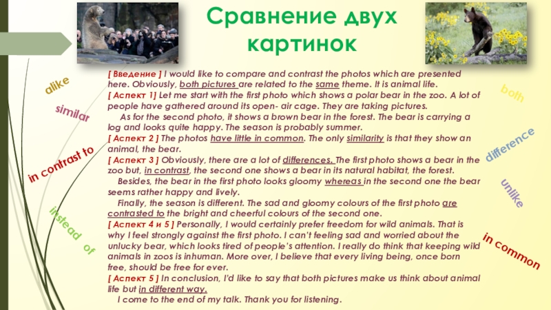 Описание доминирует над сравнением (указано лишь одно сходство и одно отличие)