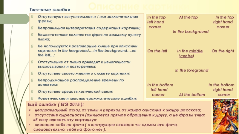 отсутствие адресности (ожидается прямое обращение к другу, а не фразы типа: «Я хочу описать эту картинку»;