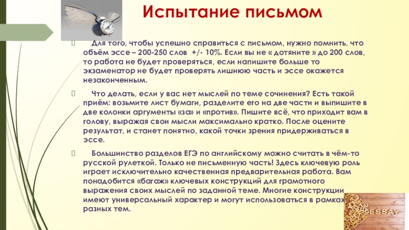 Следует регулярно практиковаться в выполнении письменных заданий разного объёма, чтобы развить готовность написать работу в соответствии с объёмом, указанном в тестовом задании.