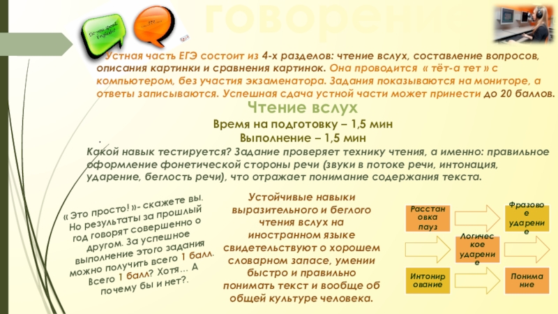 Устойчивые навыки выразительного и беглого чтения вслух на иностранном языке свидетельствуют о хорошем словарном запасе, умении быстро и правильно понимать текст и вообще об общей культуре человека.